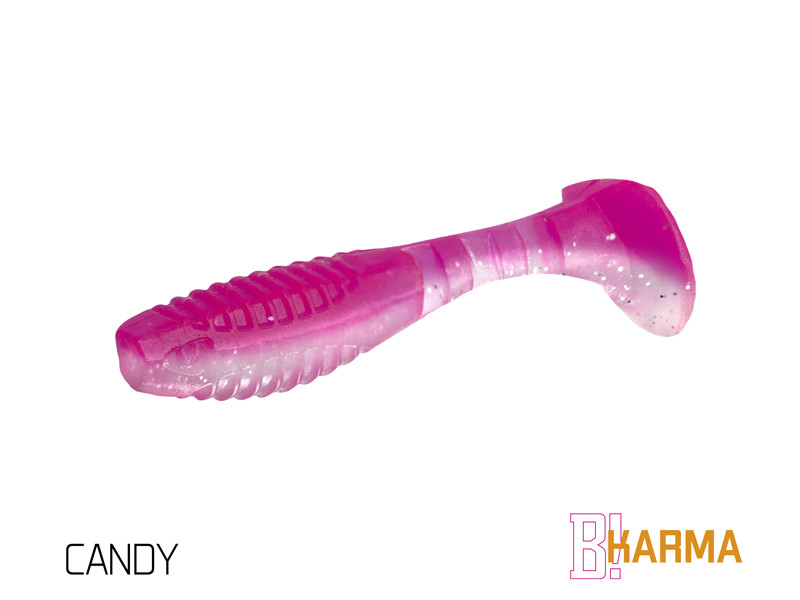 A KARMA modell tervezését kezdettől fogva nem klasszikus megoldásként választottuk a klasszikus modellhez. A cél egy sokrétű felhasználást lehetővé tevő csali megalkotása volt. Első pillantásra észreveheti, hogy a testméret és a csali farok aránya eltér a szokásostól. A csali nagyobb farka a csali atipikus mozgását okozza, ami a farok oszcillációja mellett a test gyengéd forgását is hozzáteszi, ami sérült egyed benyomását kelti. Ez a mozgás rendkívül vonzó a halak számára, és új lehetőségeket kínál a csalival való munka során. A csalitest és a farok csatlakozása között három bevágást modelleznek, amelyek hitelességet adnak a csali mozgásának. A csali teste a háton és a hason rovátkolt. Ennek két oka van. Az első a víz vibrációjának növelése. A második ok az, hogy megkönnyítsük a csali horogra helyezését. A bevágások segítségével pontosan le tudod mérni, hogy a csaliba hova kerül a horog. A jigre való felszúrás így egyszerű. A csali elülső részén a száj területén egy kivágással van módosítva, hogy a csali jobban illeszkedjen a jigfejhez.